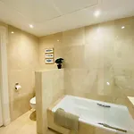 A 2 szobás D9 Espectacular Y Moderno Apartamento En Primera Linea - Estepona - Sinfonia Del Mar Apartman rendelkezik terasszal és ülősarokkal, továbbá olyan kényelmekkel, mint a klímaberendezés. Az ingatlan extrái között szerepel a vendégek számára biztosított hajszárító és törölközők a fürdőszobában. Továbbá fürdőkád és zuhanyzó szintén elérhető.